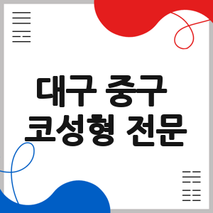 상담 예약 방법: 대구 중구 지역의 코성형 수술 전문 병원들은 온라인 상담 예약 시스템을 운영하고 있습니다. 병원 홈페이지에서 간단한 정보를 입력하면 전문의 상담을 예약할 수 있습니다. 상담 시 수술 방법, 비용, 주의사항 등을 자세히 안내받을 수 있습니다.